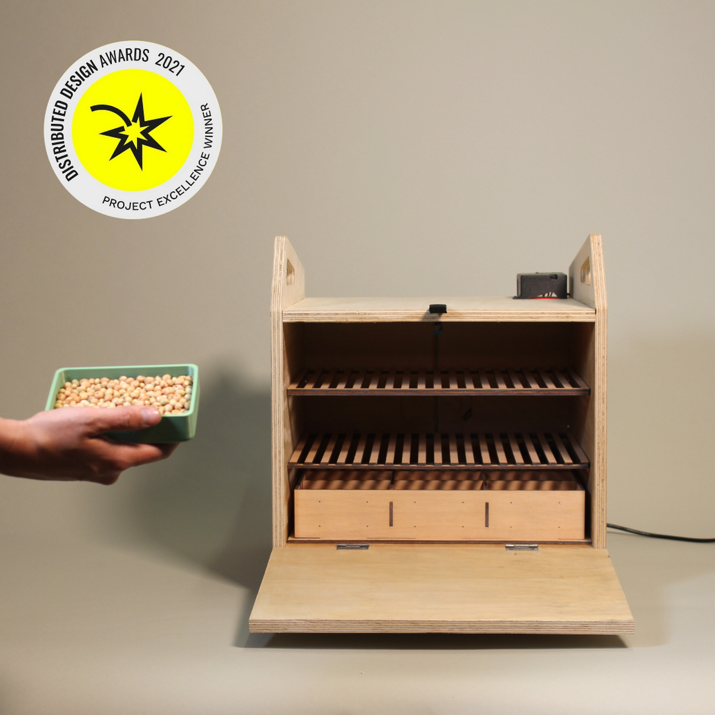 Our tempeh incubator won the Distributed Design Excellence Award 2021, tackling all four core principles of the distributed design model: Open, Ecosystemic, Sustainable and Supportive! The Distributed Design Awards celebrate the best maker and design responses to the post-industrial design paradigm. These awards recognize the most innovative, supportive and sustainably designed projects across Europe.