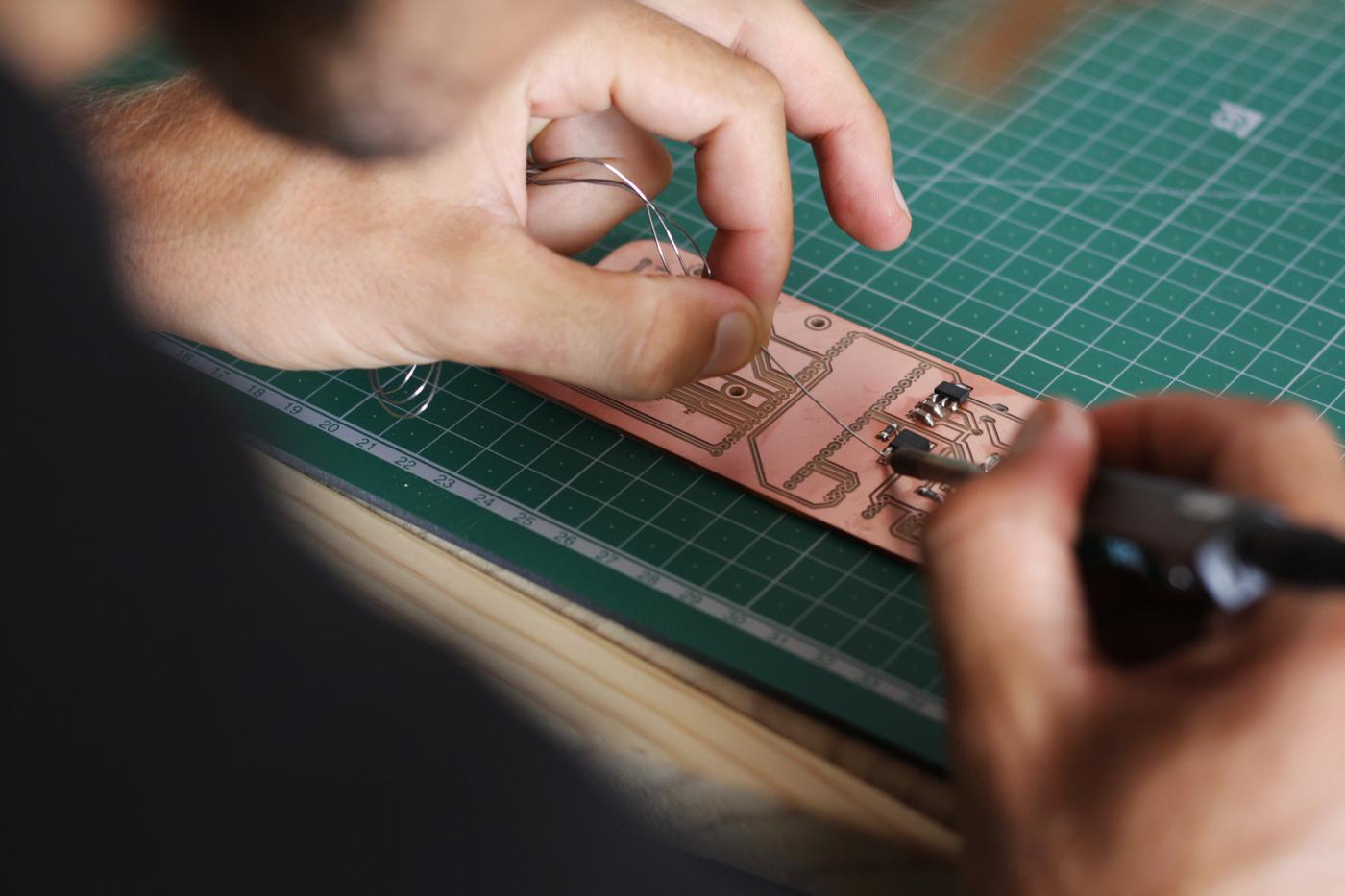 We moved our 3D printer, wooden boards, electronic components, and boxes filled with a myriad of prototyping materials from our apartment to a space in the urban design district of Poblenou in Barcelona. Once an industrial area, it began a process of transformation and regeneration in the late 1990s and is now home to entrepreneurial hubs. We have a studio!