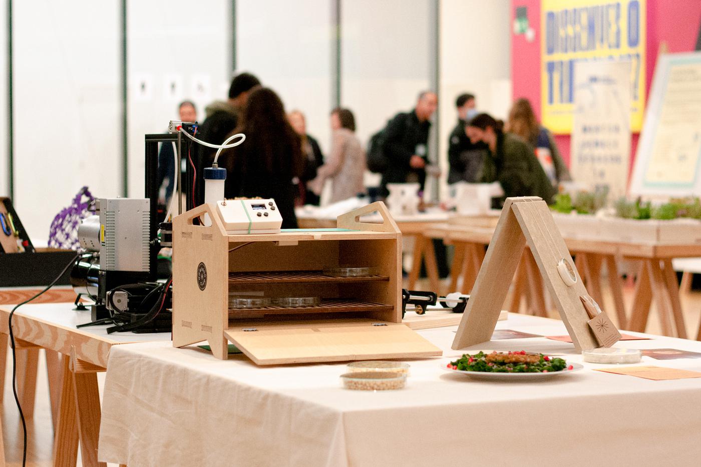 Our fermenter prototype and tempeh necklace were presented at Foodture Barcelona, the summit of food design, food tech and social food. The event took place at the Barcelona Design Center.