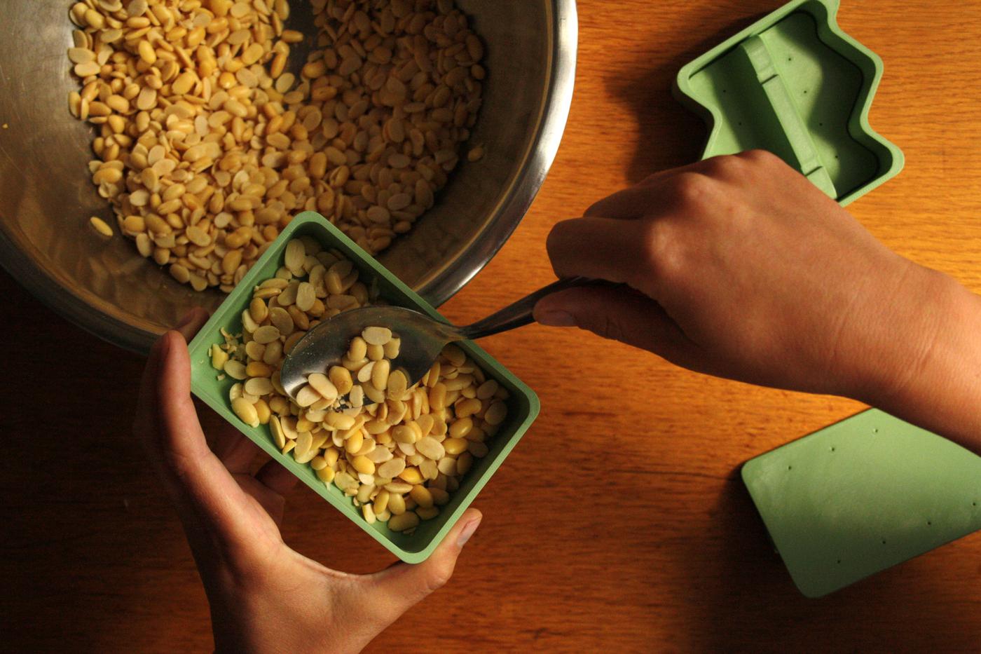 - Put the enhanced soybeans in plastic wrap, a zipper lock freezer bag or a mould